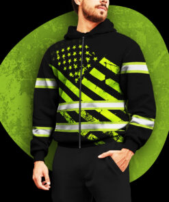 Hi Vis Zip Hoodie Reflective Tapes Mint Neon USA Flag Safety Workwear