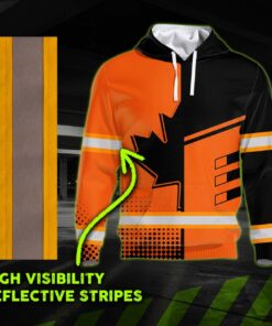 Hi Vis Hoodie Reflective Tapes Orange And Black Neon Canada Flag Safety Workwear For Workers