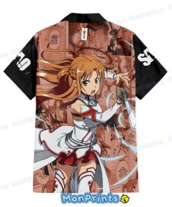 Asuna Hawaiian Shirt Sword Art Online Manga Panel Anime Red Casual Button Up Shirt