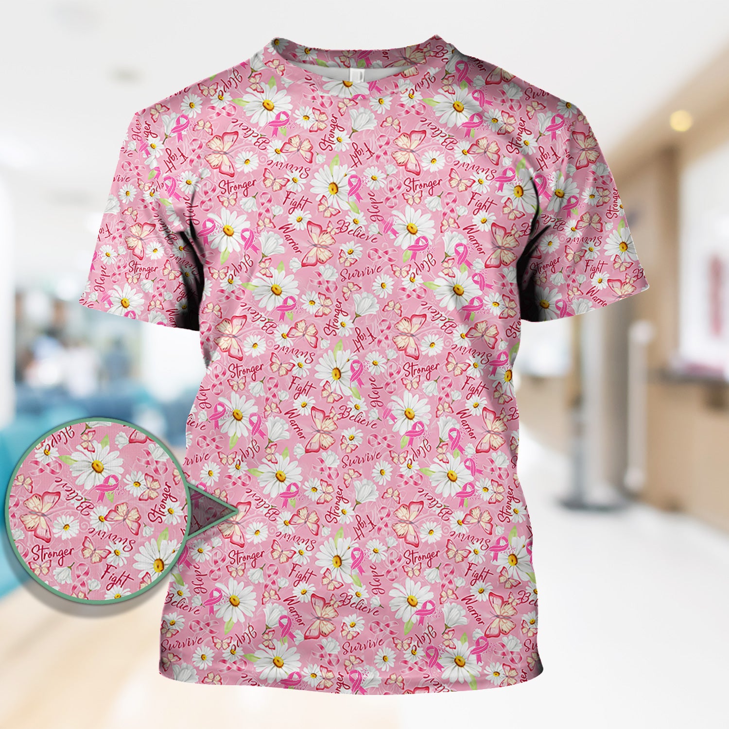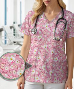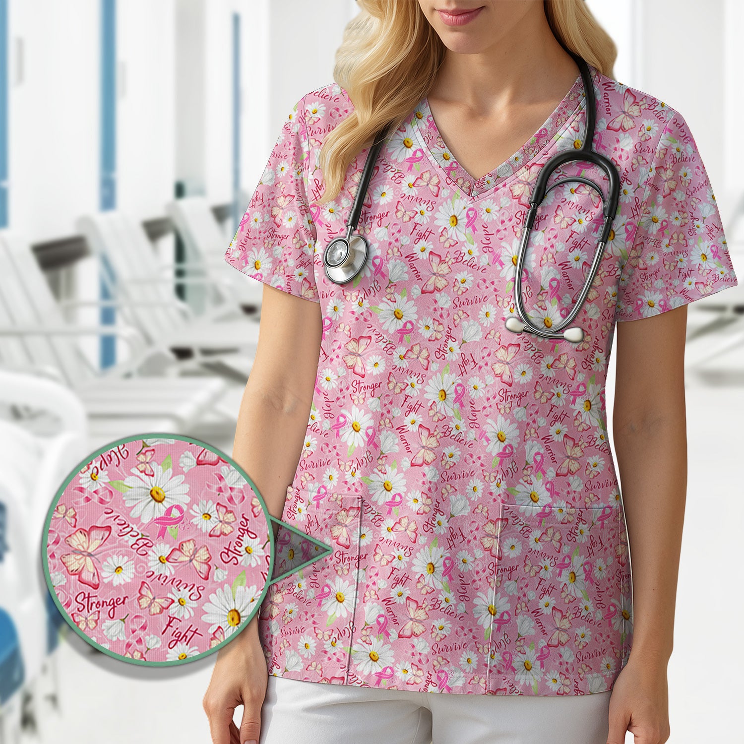 Breast Cancer Awareness Scrub – Warrior Survivor Hope & Pink Ribbon Top – Gift for Women RN LPN CNA