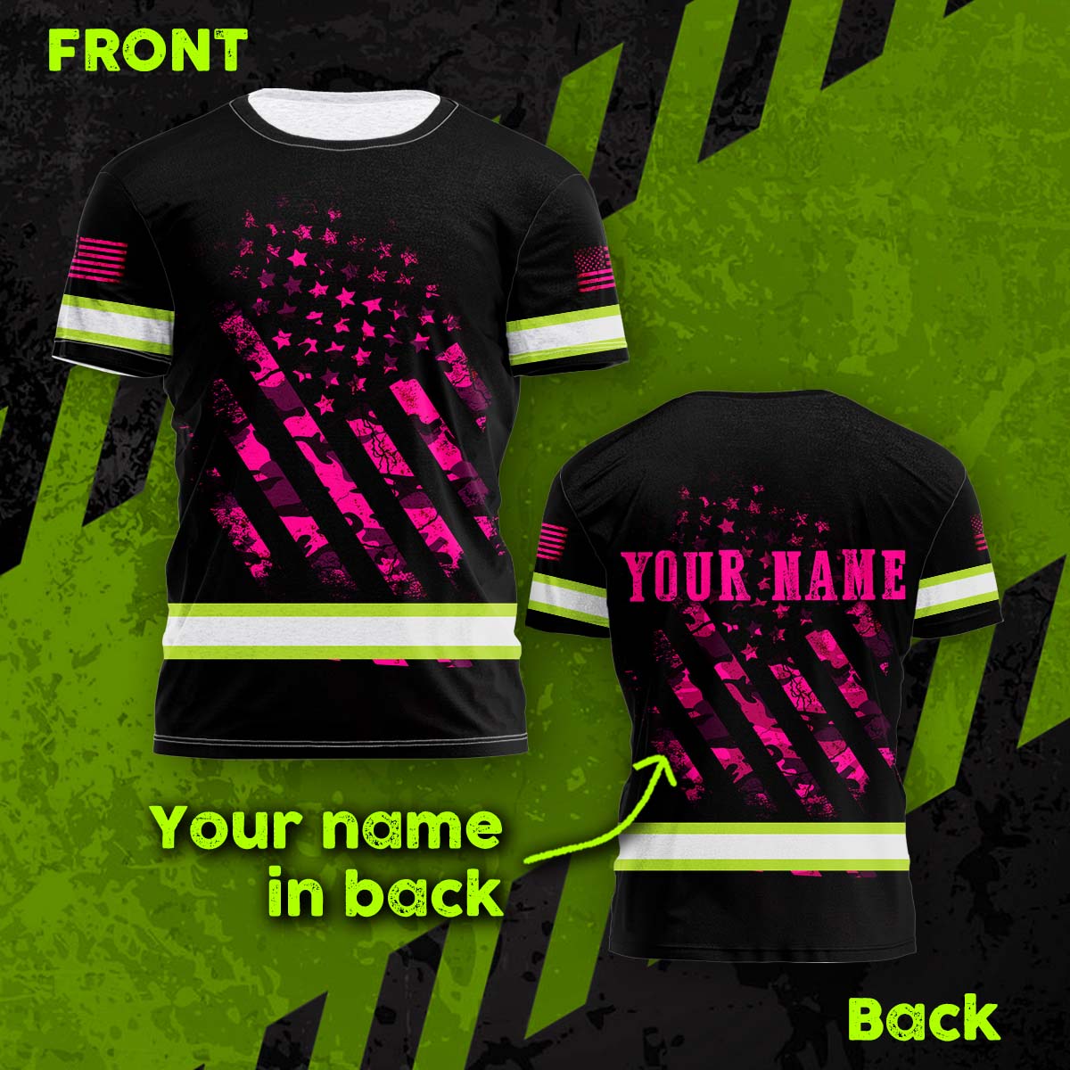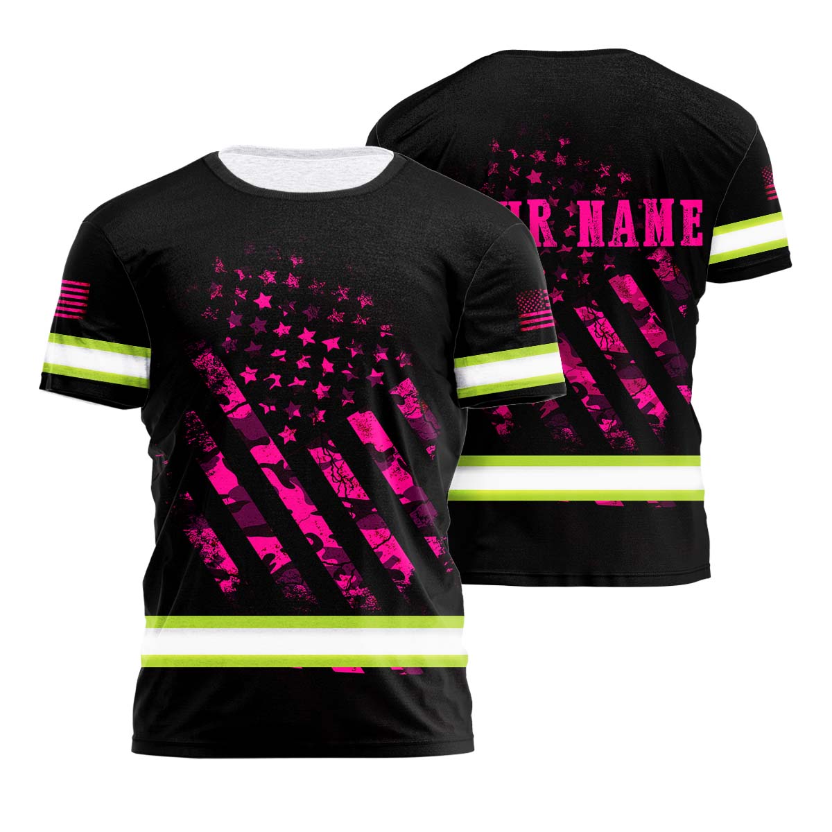 Hi Vis Shirt Reflective Tapes Pink Neon US Flag Camo Custom Name