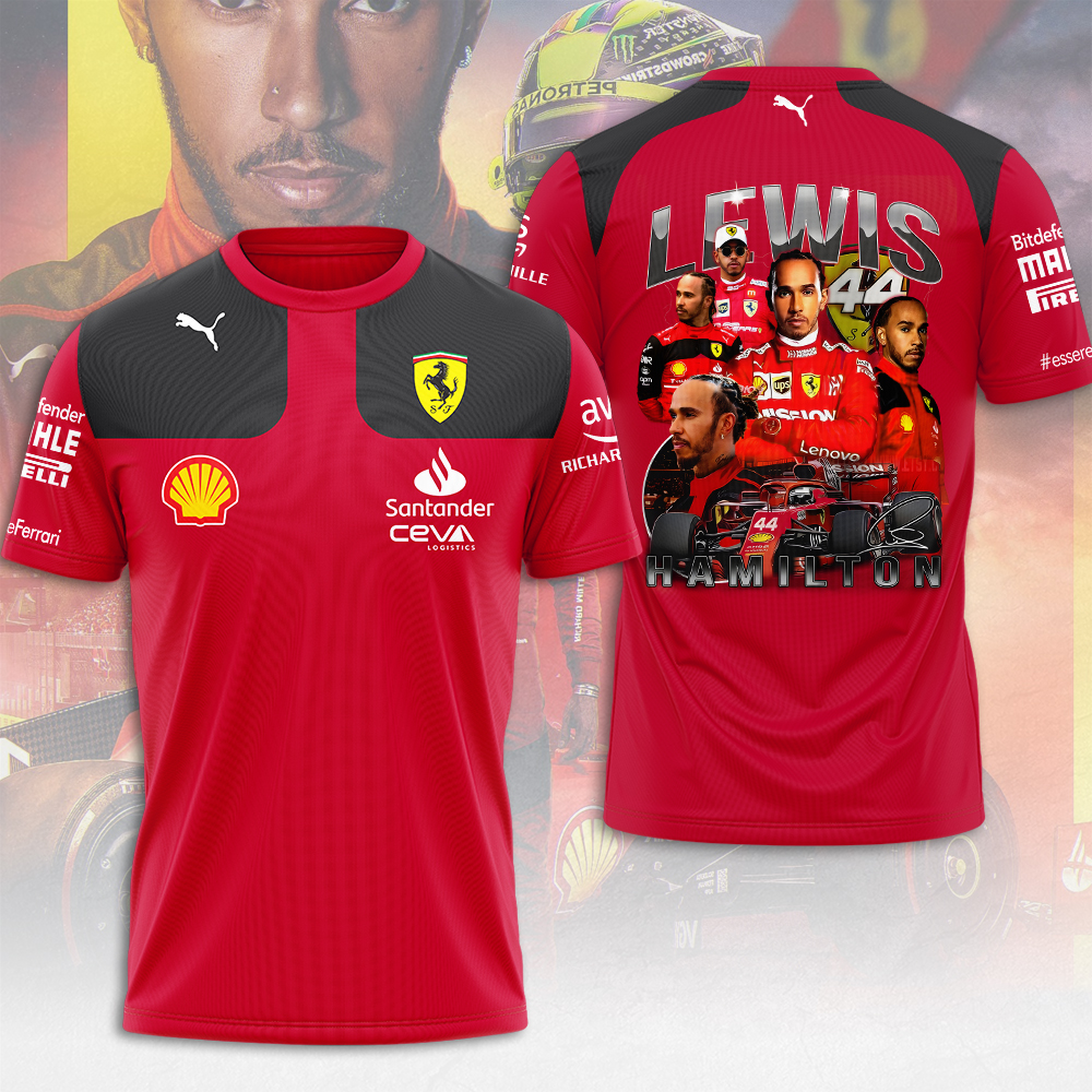 Lewis Hamilton Ferrari 44 Shirt – Precision-crafted for passionate Formula 1 fans, this high-performance Scuderia Ferrari F1 Racing Jersey merges bold design with team pride. Designed for ultimate comfort and style, this shirt pays tribute to Lewis Hamilton’s unparalleled legacy and his thrilling future with Ferrari.