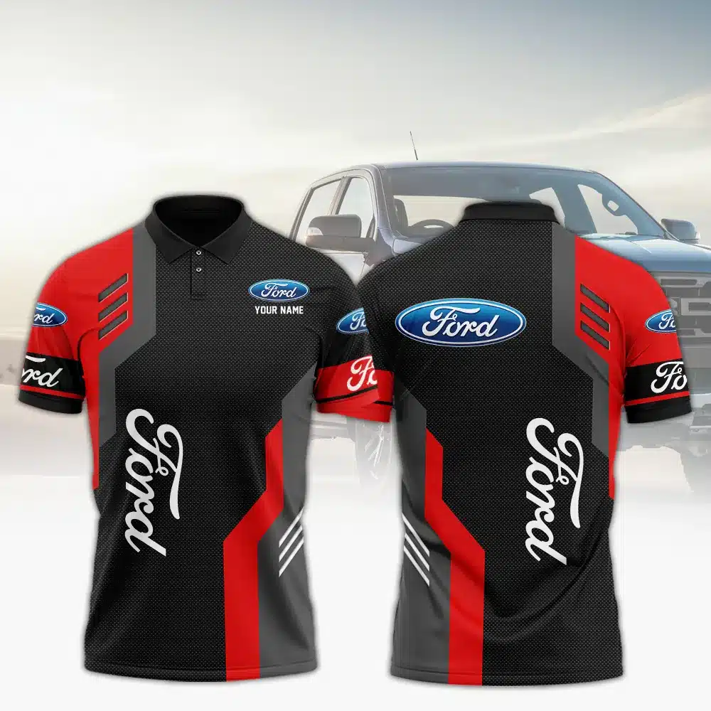 Personalized Ford Polo Shirt – Custom Name Black White Racing Style Short Sleeve