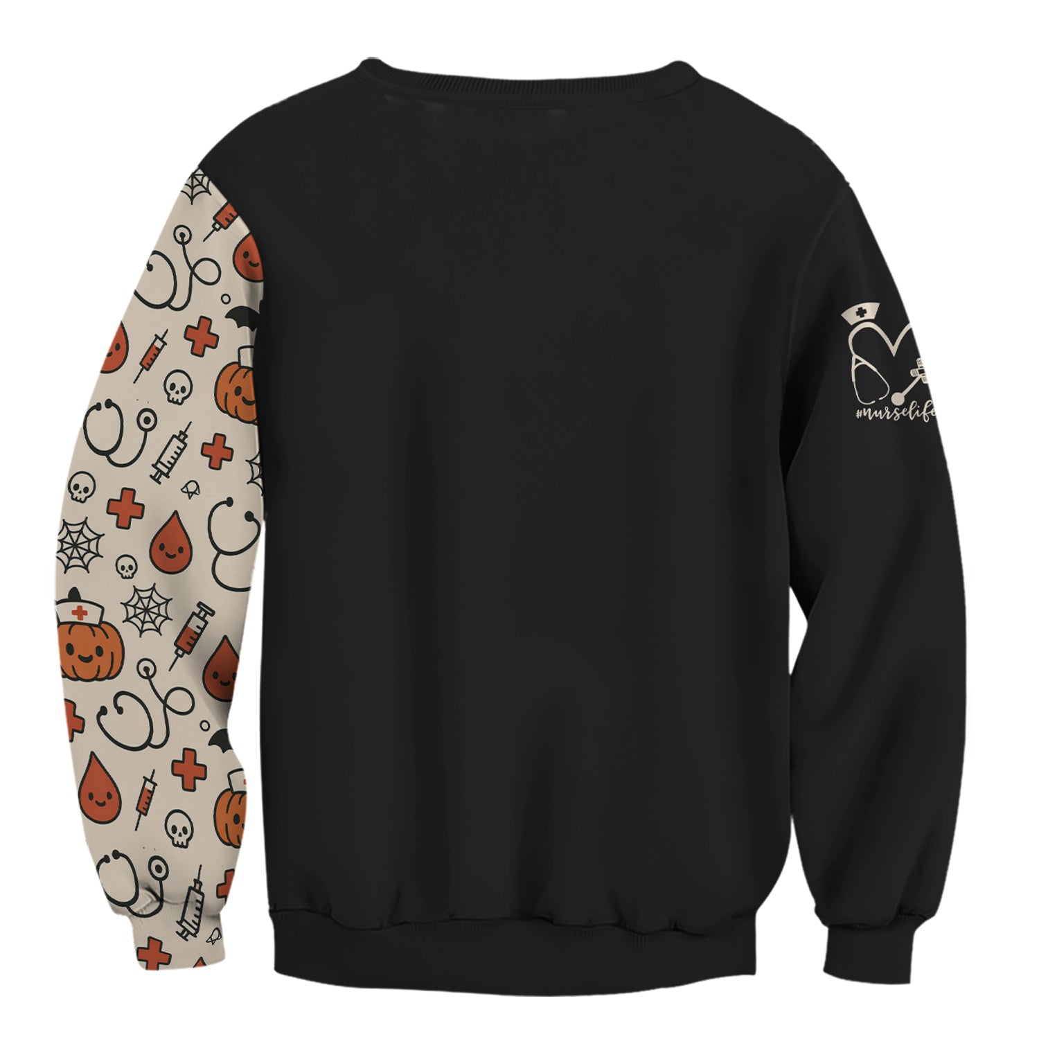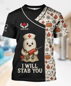 Personalized Funny Halloween Nurse Scrub Top – I Will Stab You Ghost with Syringe for Women RN LPN CNA – Gift for Healthcare Worker