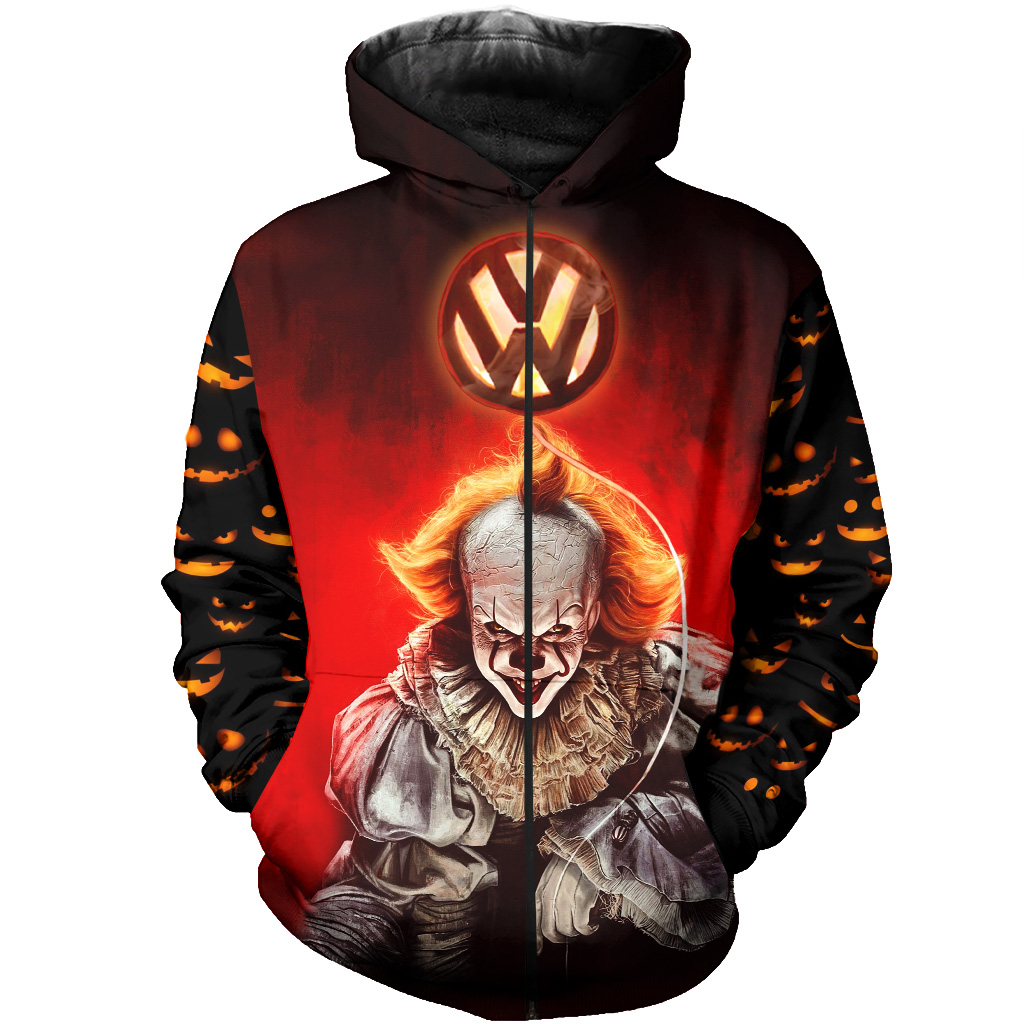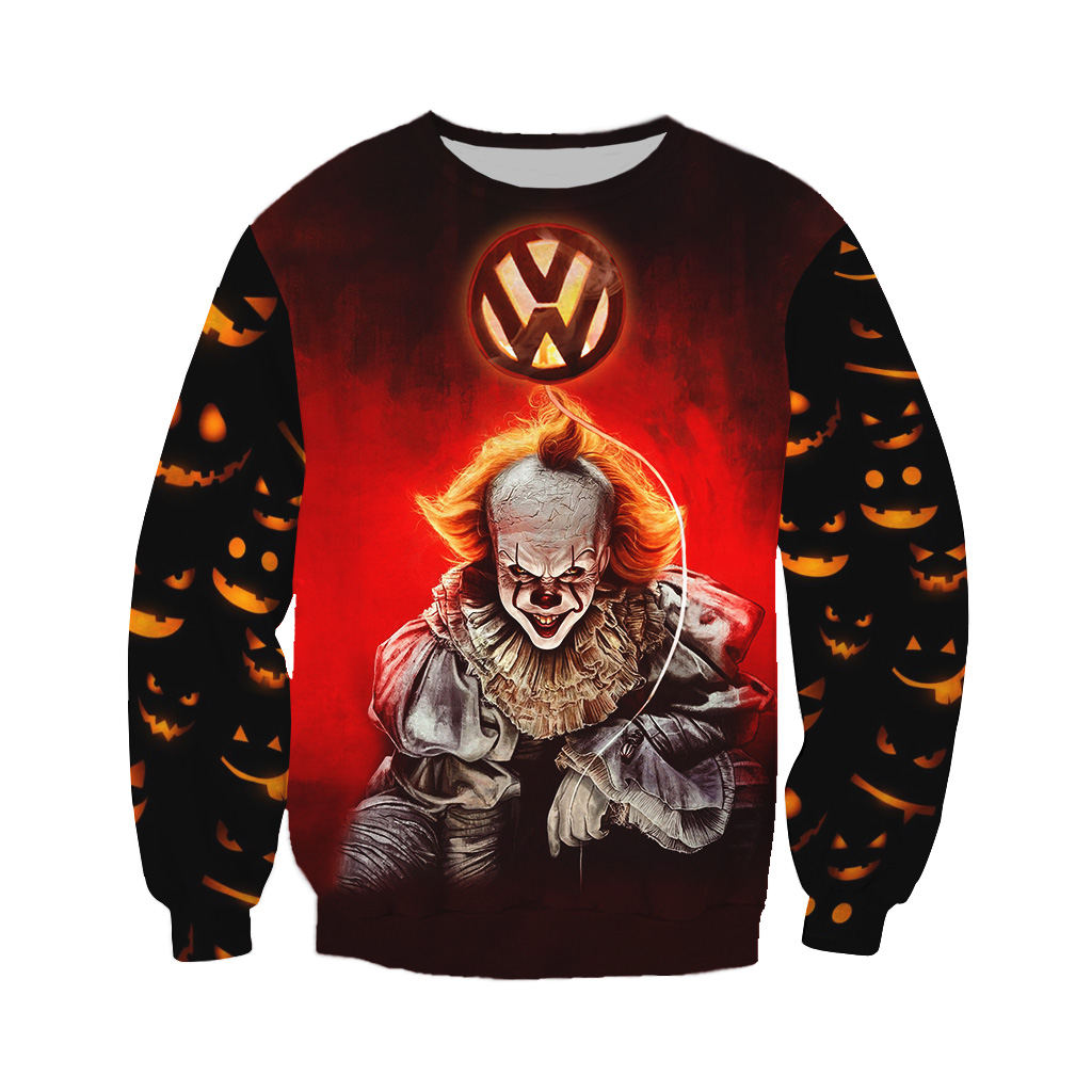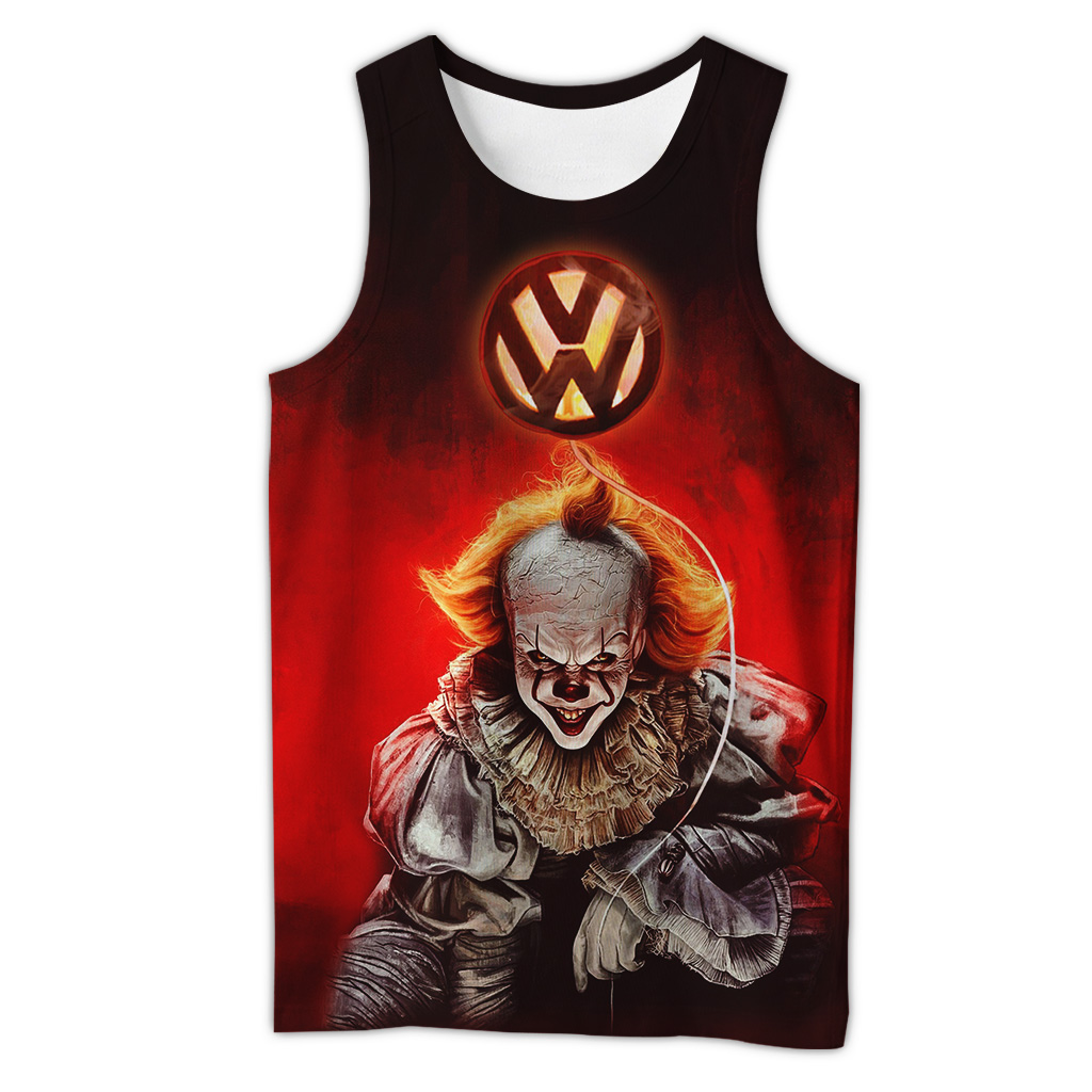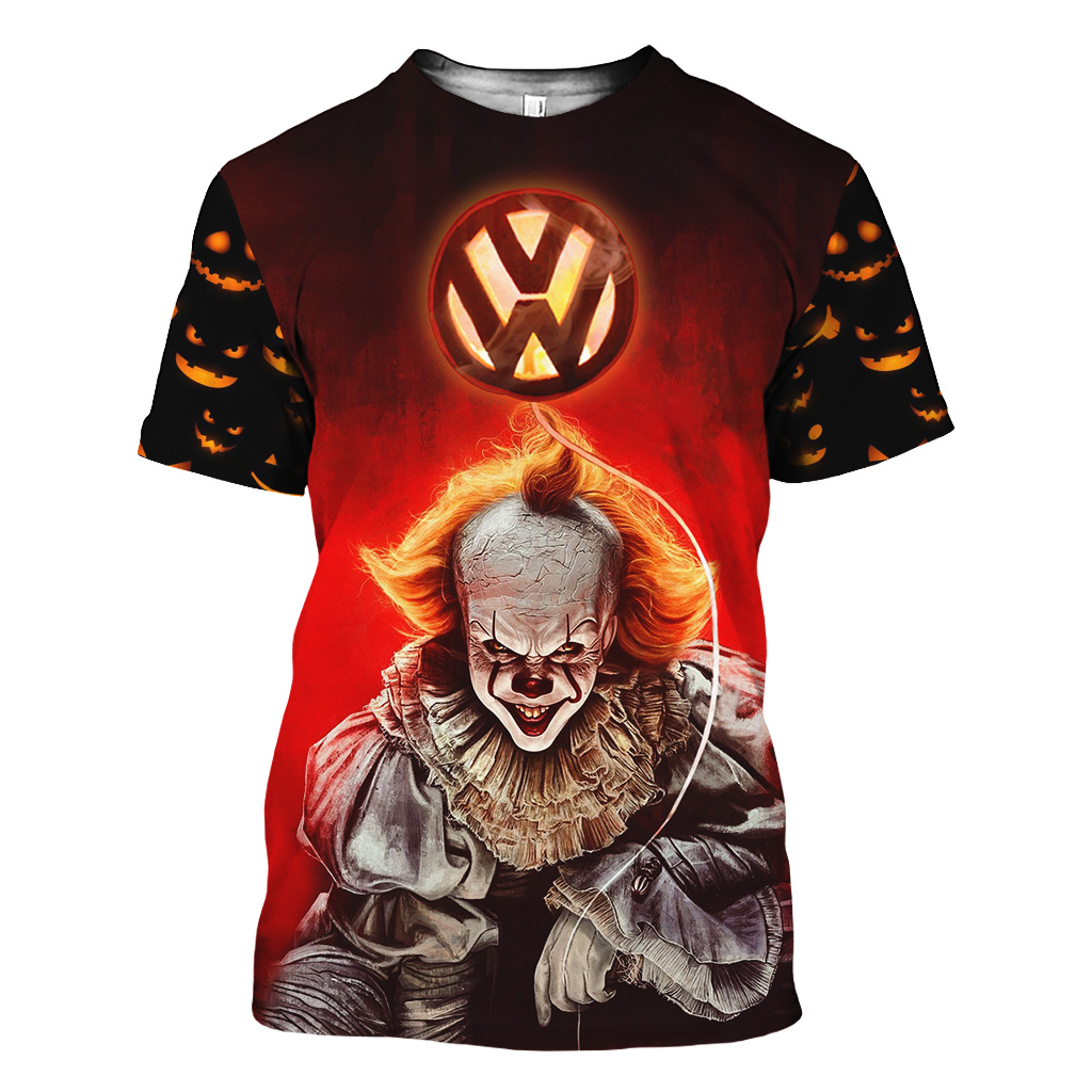 Crafted with premium materials, this shirt offers all-day comfort wrapped in spine-tingling style. The high-definition 3D print ensures every sinister detail of Pennywise’s twisted grin comes to life—whether you’re out haunting the streets on Halloween night or making a statement at a themed event. It’s not just a t-shirt; it’s a conversation starter, a collector’s piece, and a bold nod to two legendary names—Volkswagen and IT.
