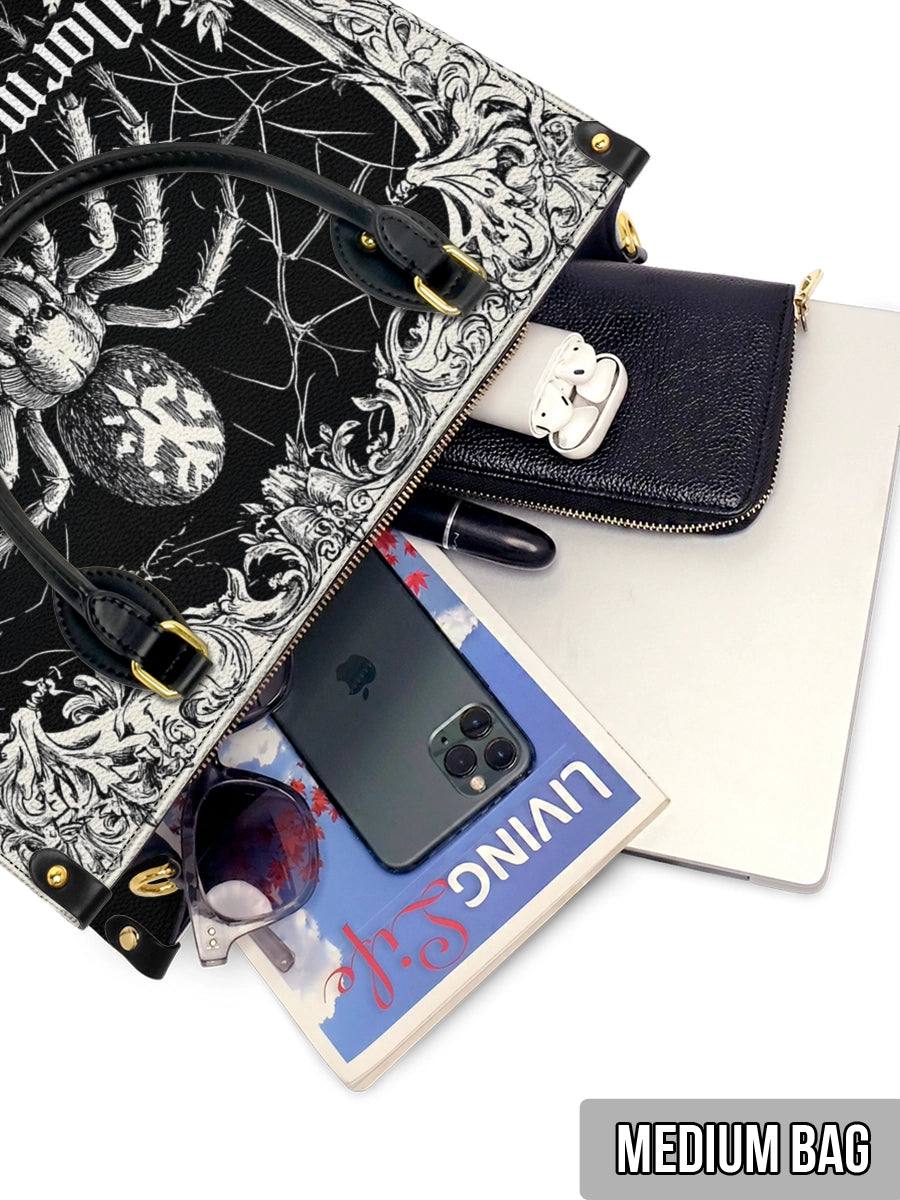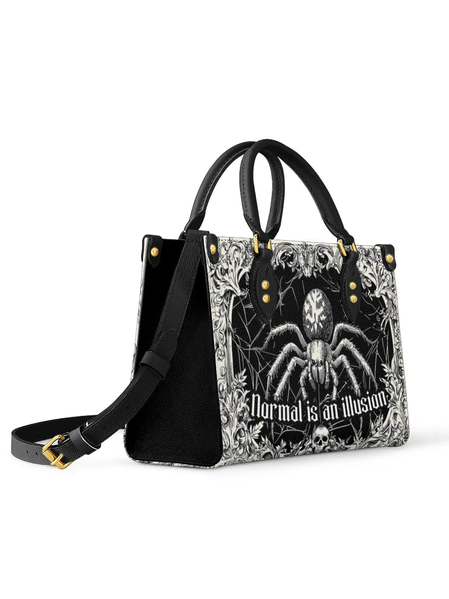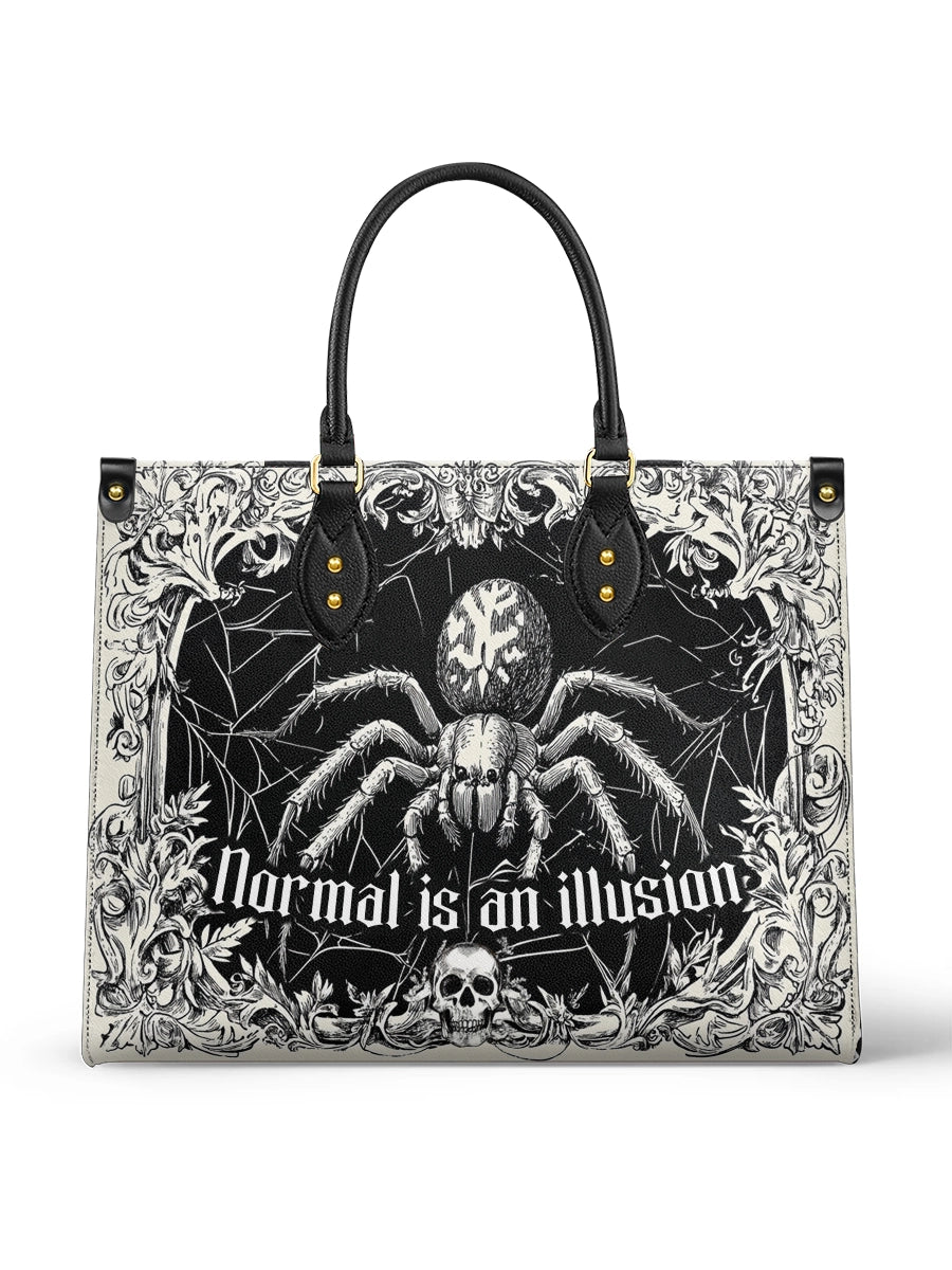 Web of the Unseen Gothic Leather Handbag – Spider, Skull & “Normal Is an Illusion” Purse