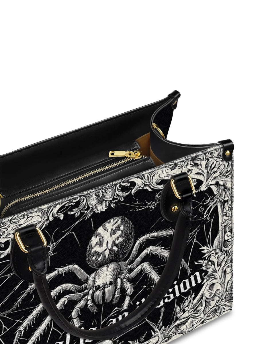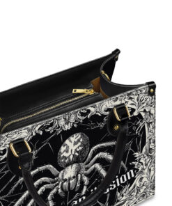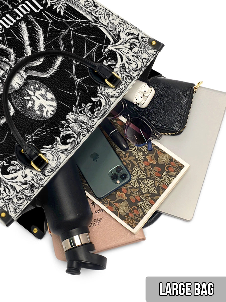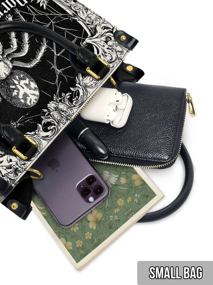 Web of the Unseen Gothic Leather Handbag – Spider, Skull & “Normal Is an Illusion” Purse