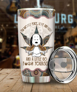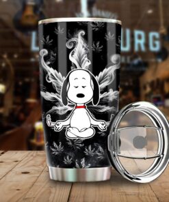 Snoopy Peace Love And High Tumbler – Funny Weed Coffee Mug, Stoner Travel Cup, Hippie Cannabis Gift