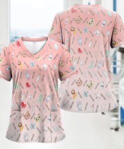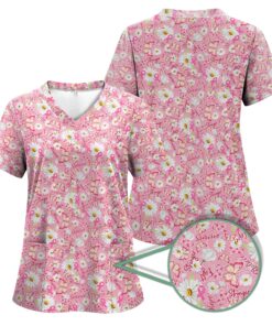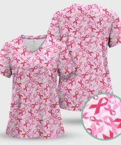 Breast Cancer Awareness Scrub Top – Pink Ribbon Nurse Shirt All Over Print – RN CNA LPN Gift