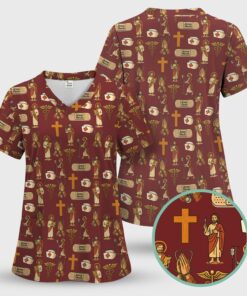 Breast Cancer Awareness Nurse Scrub – Custom Face Nurse Scrub for Women – Gift for RN LPN CNA